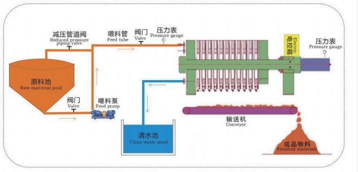 Filter Press is one kind of traditional solid-liquid pressure separation equipment. It has been widely used in industrial production for many industries such as water treatment, petroleum, textile, pharmaceutical, dye, metallurgy, mineral processing, food.etc.It has a good solid-liquid separation effect and wide suitability, especially for separation of fine and sticky materials.